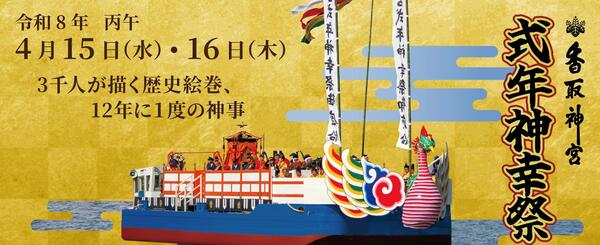 香取神宮で毎年行われる4月14日の例祭と15日の神幸祭は、年間90余度の祭典行事の中でも最重儀かつ最盛儀の祭りであり、特に12年に一度の午年には式年大祭と式年神幸祭として斎行され盛大殷賑(せいだいいんしん)を極めます。